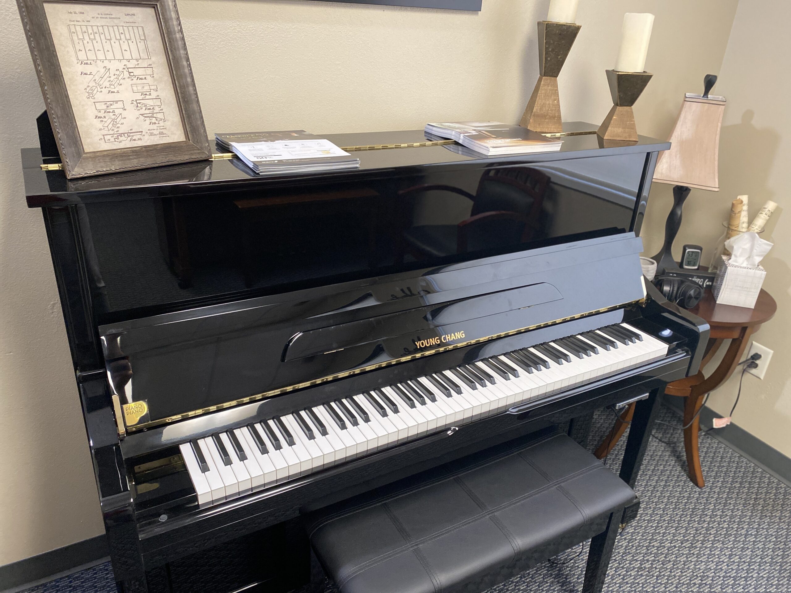 $9,495 Brand New Young Chang YG-121E with Silent Piano System from Genio for sale from De Ford & Sons Pianos. This brand new piano is equipped with the silent piano system, allowing you to play the piano with headphones and not disturb anyone!